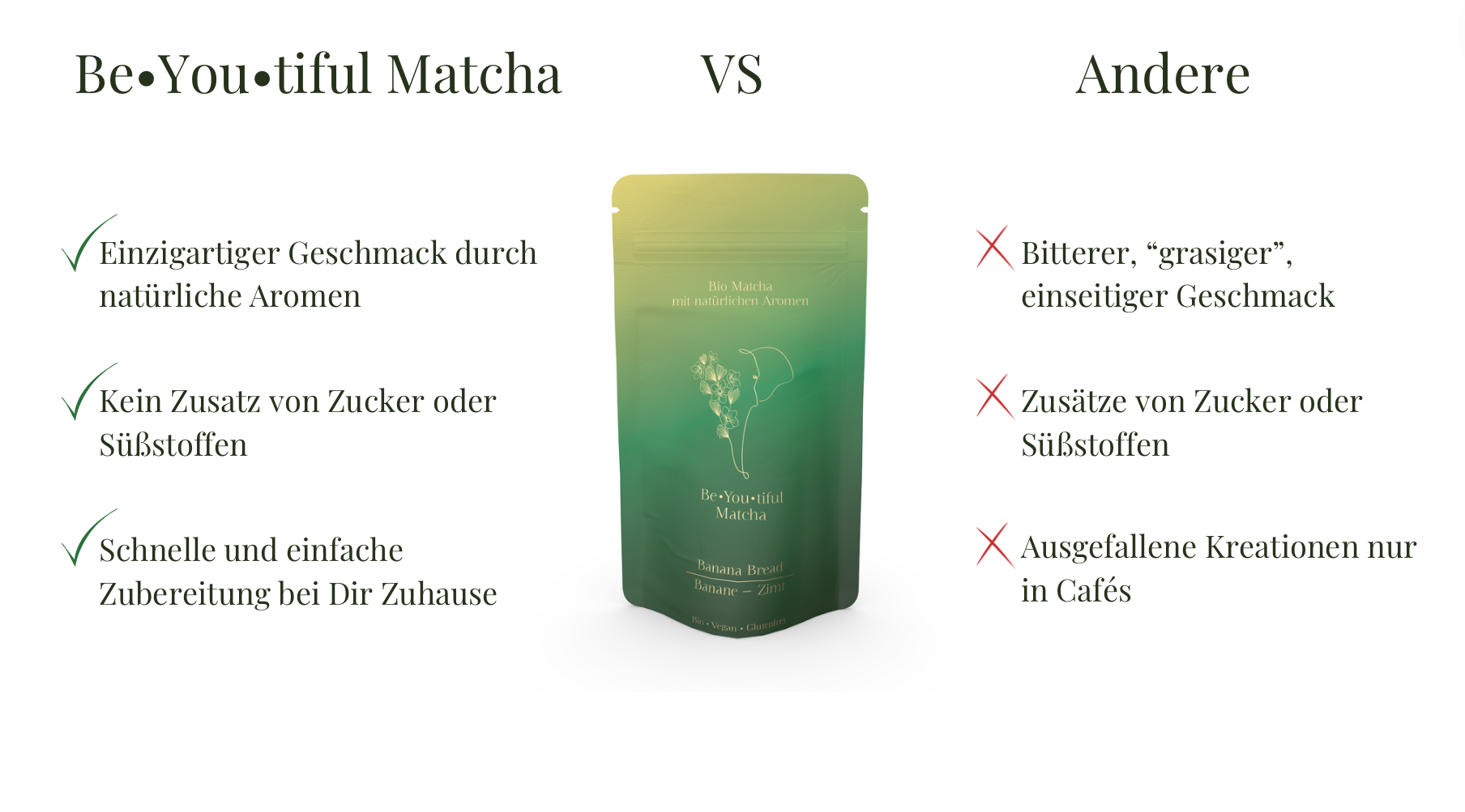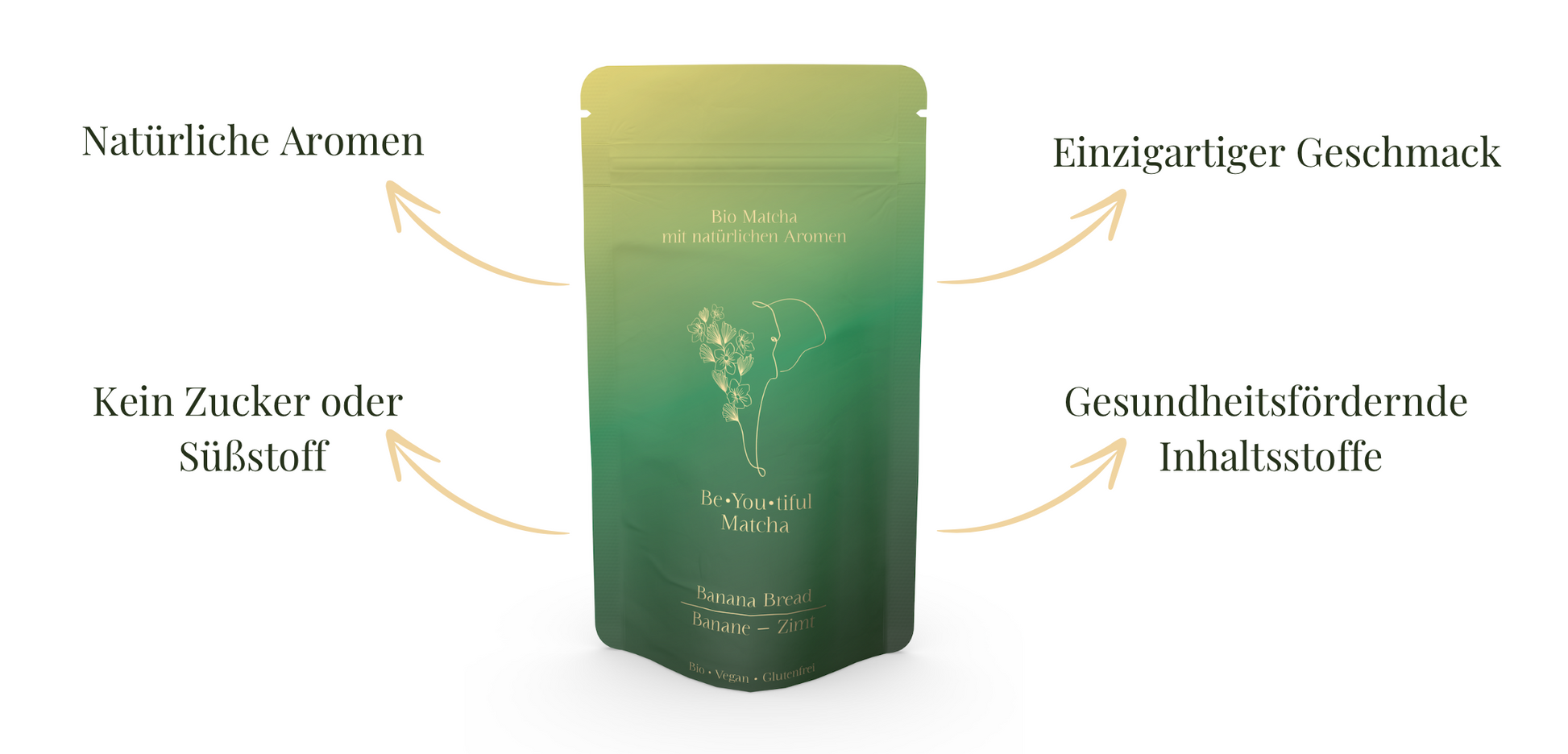 Dein Bananenbrot zum Trinken! Erlebe die perfekte Kombination aus dem leicht herben Matcha Tee und der angenehmen Süße der Banane - verfeinert durch geröstete Haselnüsse und eine Prise Zimt. Für alle, die die Vorzüge des Matchas genießen wollen und dabei nicht auf Geschmack verzichten wollen!